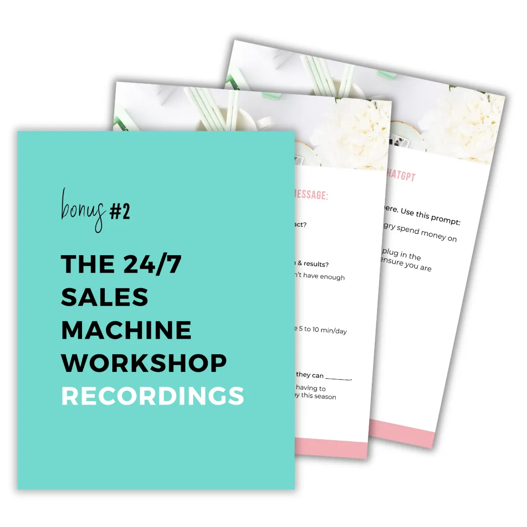 Access our step-by-step workshop anytime with "The 24/7 Sales Machine Workshop Recordings." Discover how to build a sales system that generates revenue 24/7, filled with actionable insights to turn your business into a profit powerhouse.